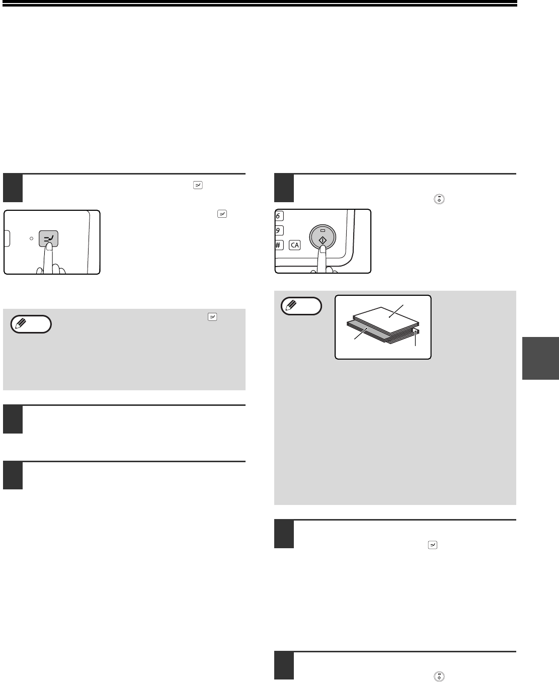 • Interrupt copying is not possible when the document glass is being used for a copy job and "NO SORT" is