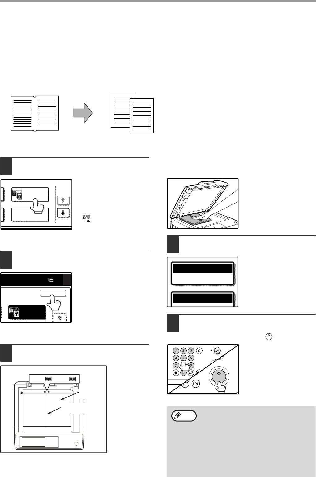 The dual page copy function produces separate copies of two adjoining pages on the document glass. It is