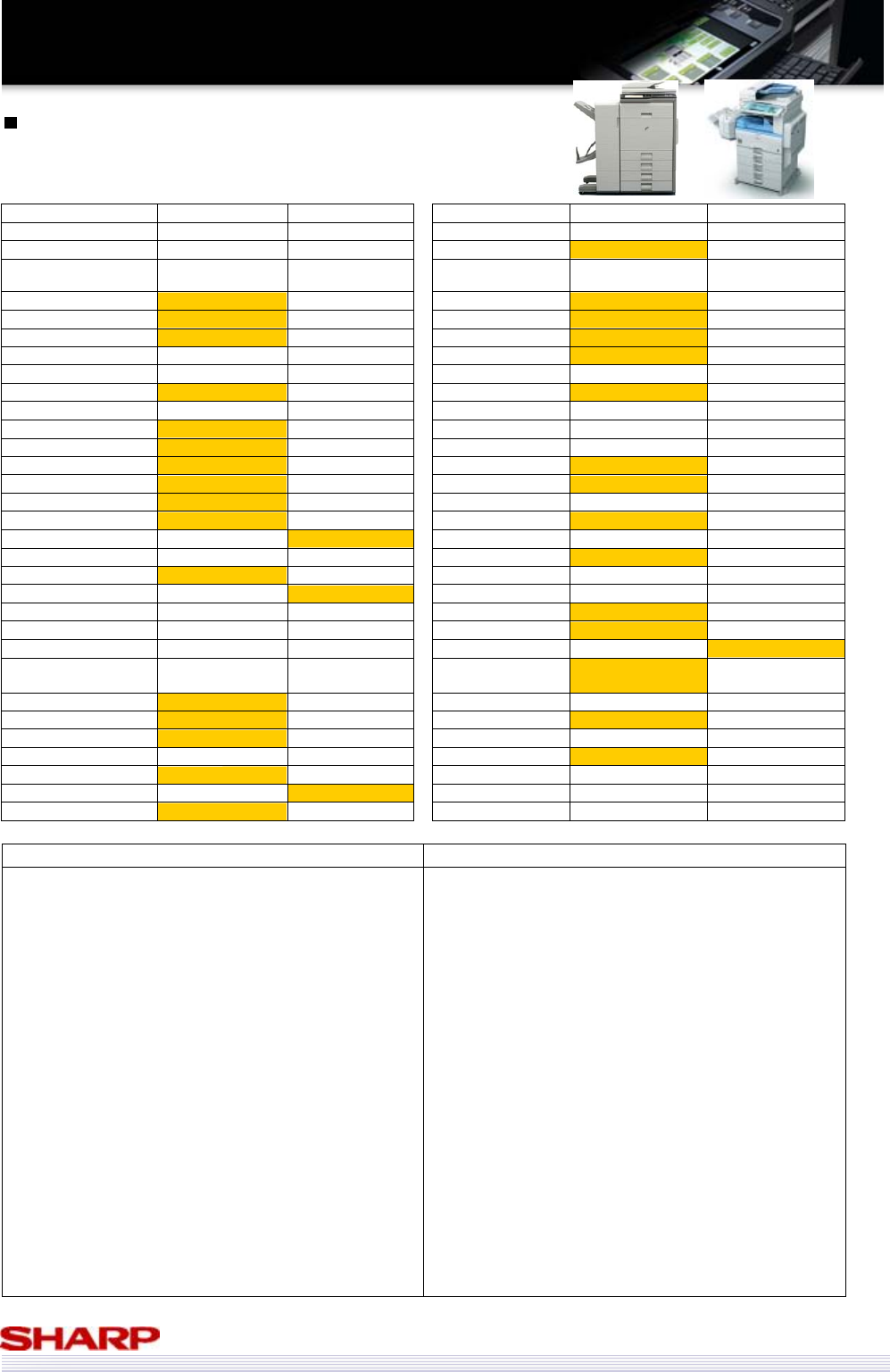 Copier Std. Mem. MB 640mb 256mb (shared) Functionality Sharpdesk