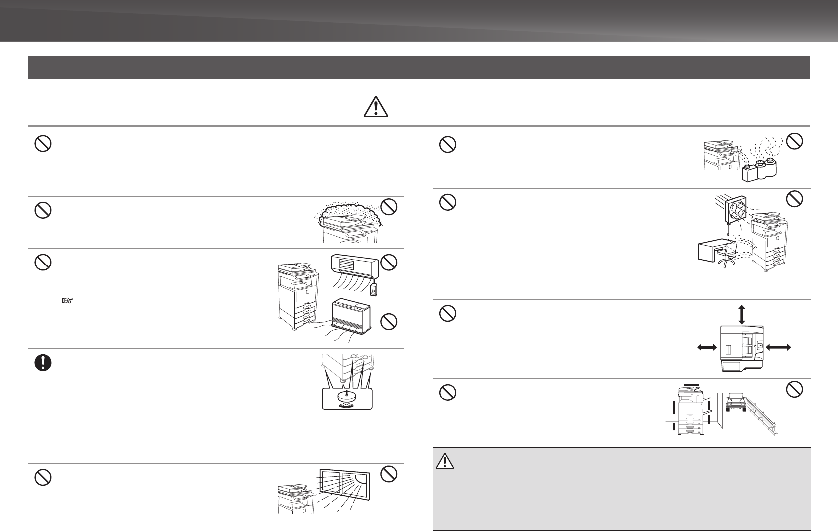 Installing the machine next to a diazo copy machine may cause