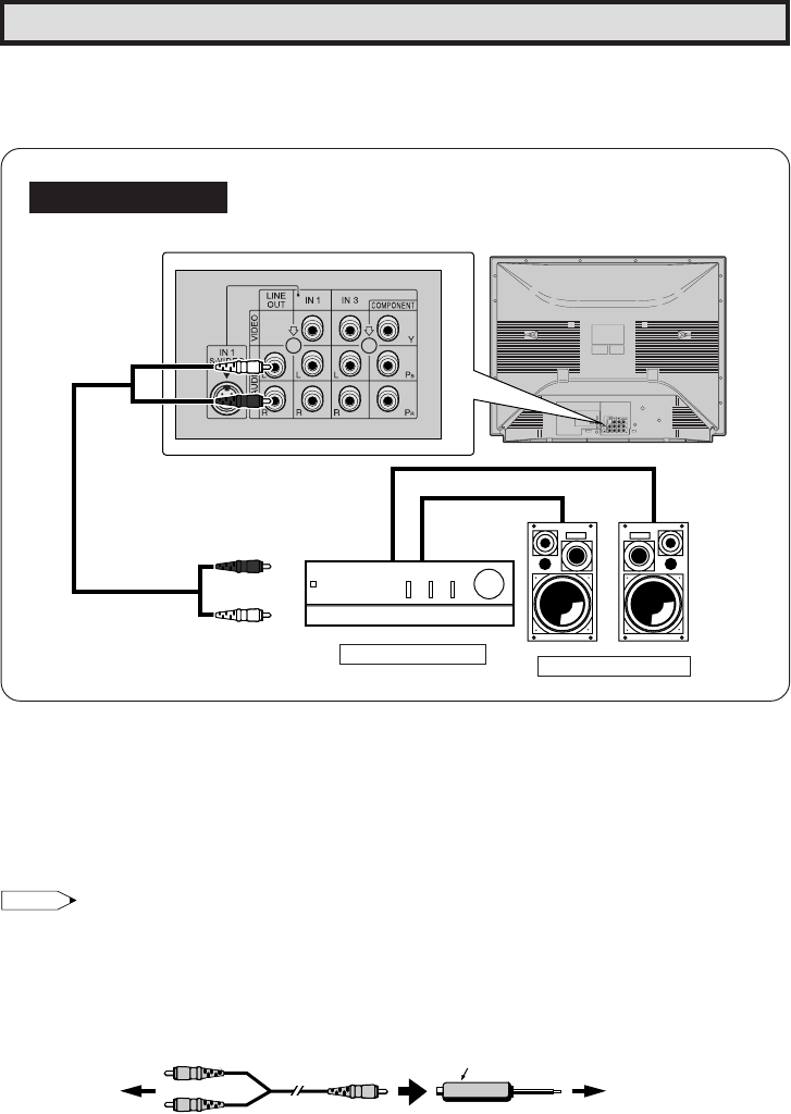 (2) Turn off the TV and connect the audio cables to the AUDIO LINE OUTPUT terminals on the TV.