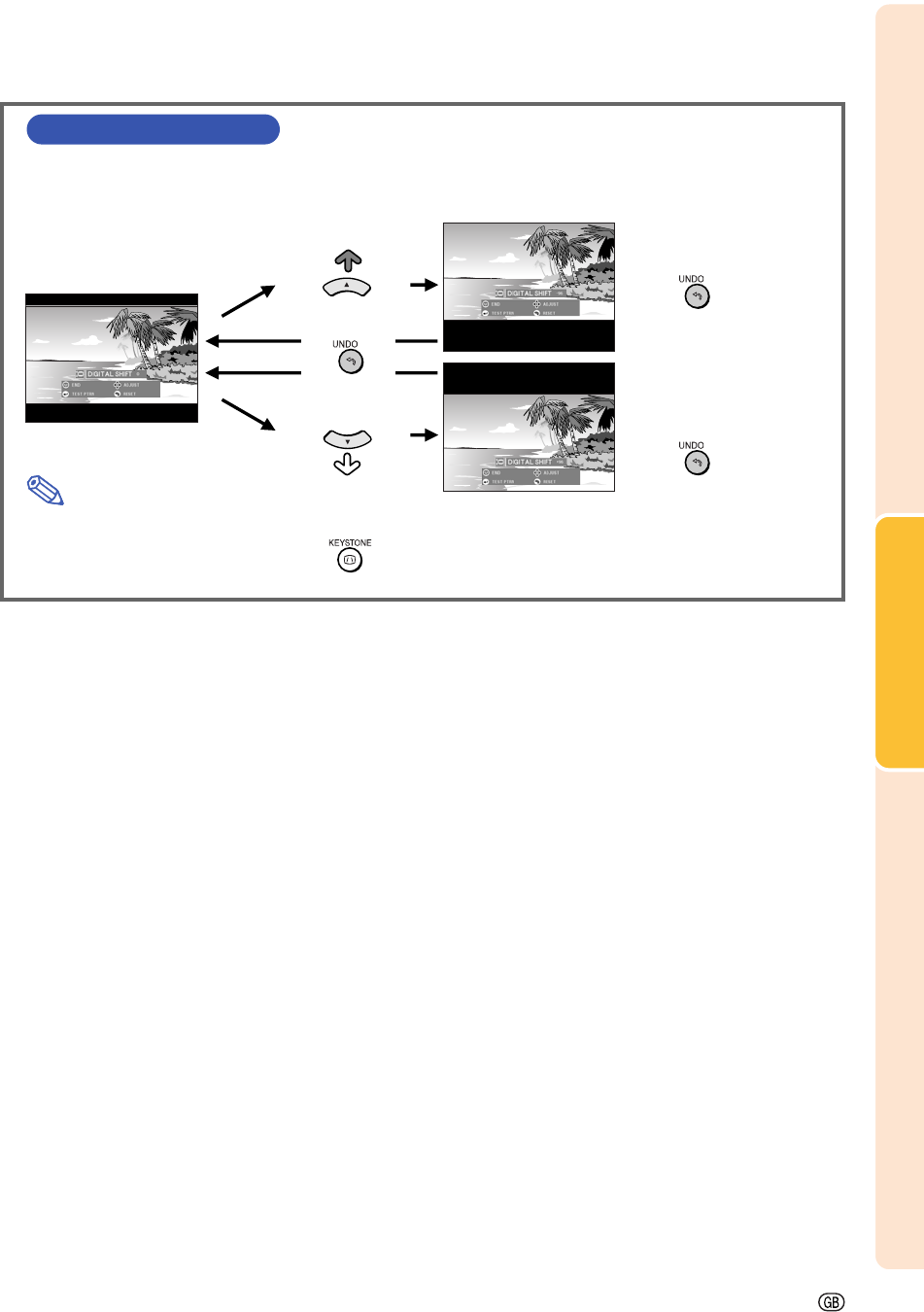 For easier viewing, this function shifts the entire image projected on