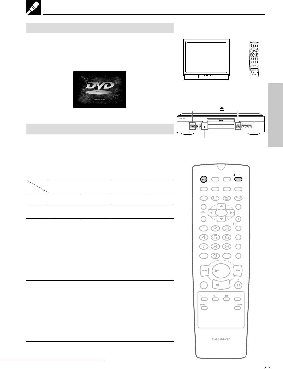 “SHARP DVD VIDEO PLAYER” appears on the Player’s front