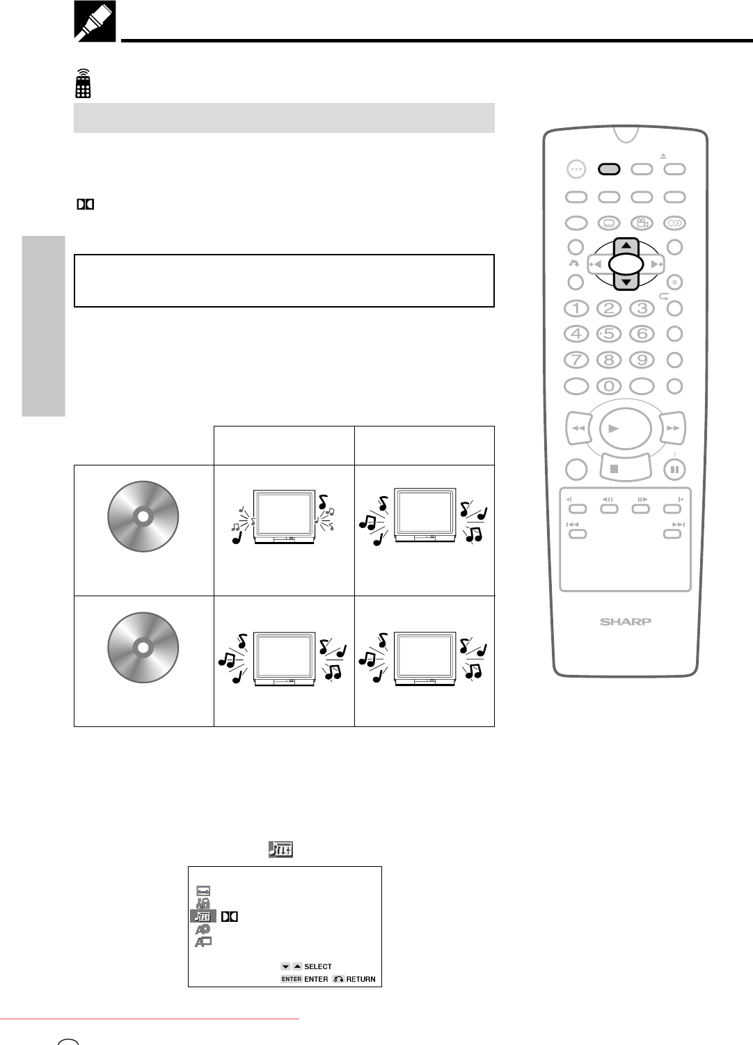 2 Use ' or " to select the “ AUDIO SETUP”.