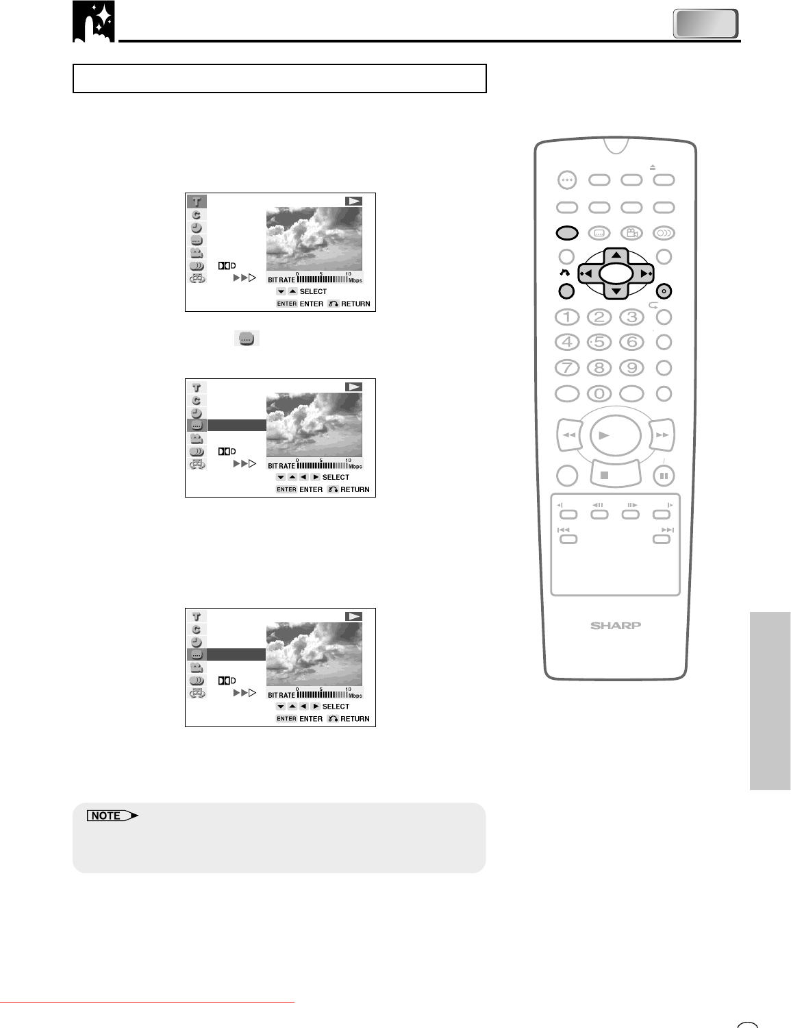 • See page 56 about how to change the settings using the SUBTITLE