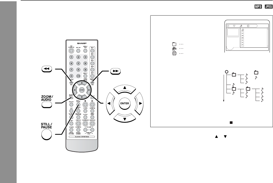 In the stop mode, press the cursor ( or ) button to select a folder/