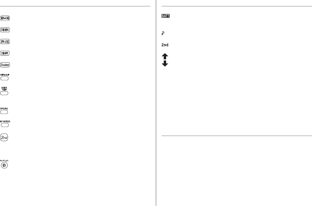 Key assignments Display symbols