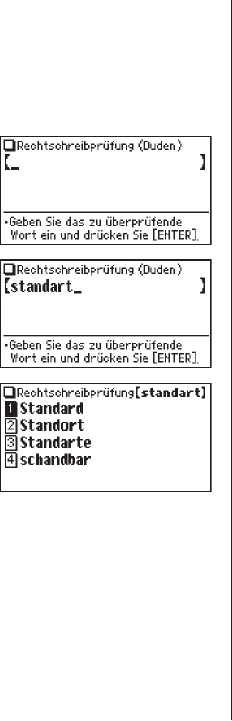 followed by the input screen of the spellcheck function. In this case you may wish