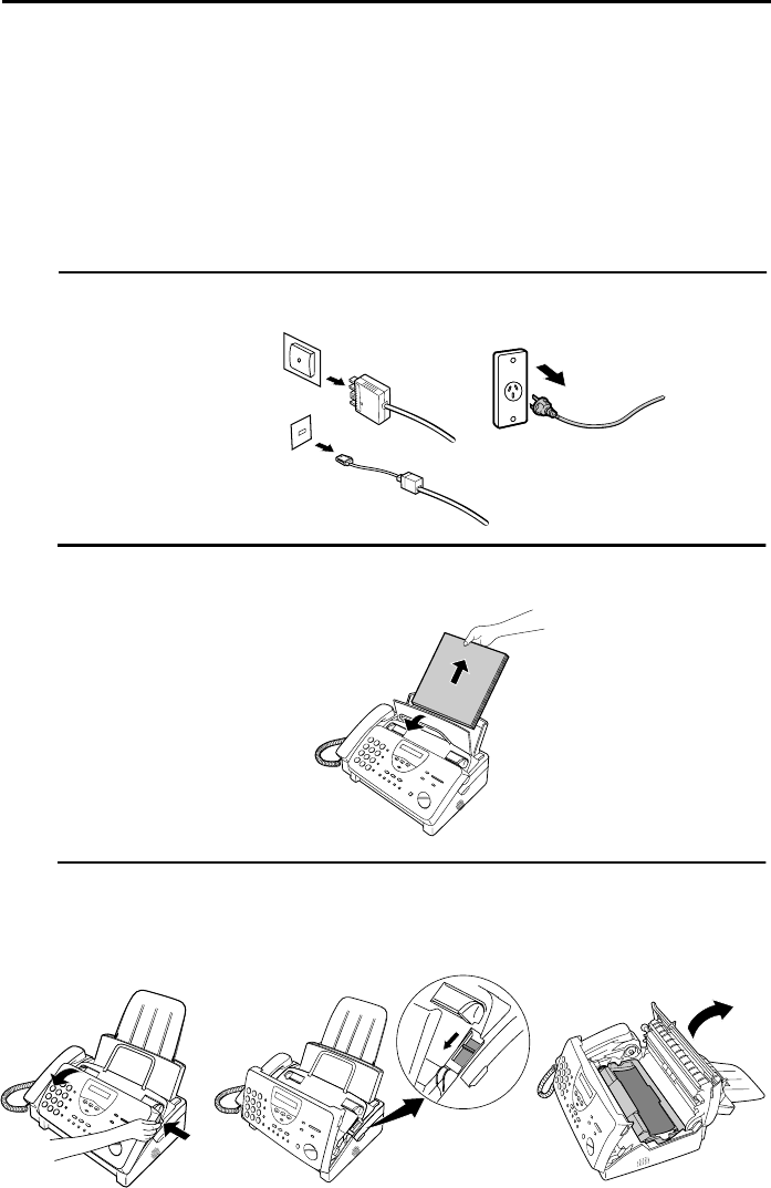 First unplug the telephone line, then unplug the power cord.