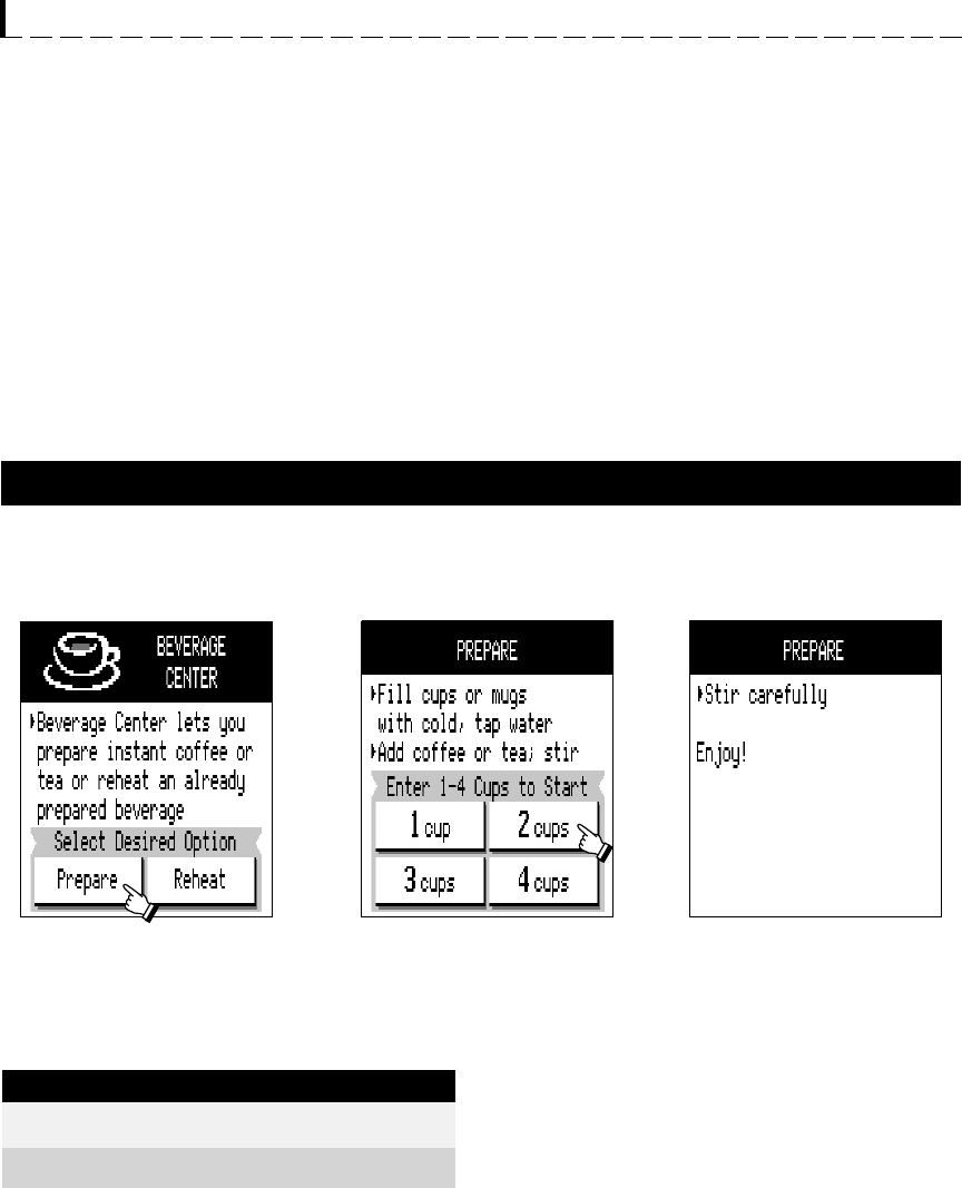 Beverage Center enables you to restore coffee or tea to a more suitable drinking temperature or to prepare