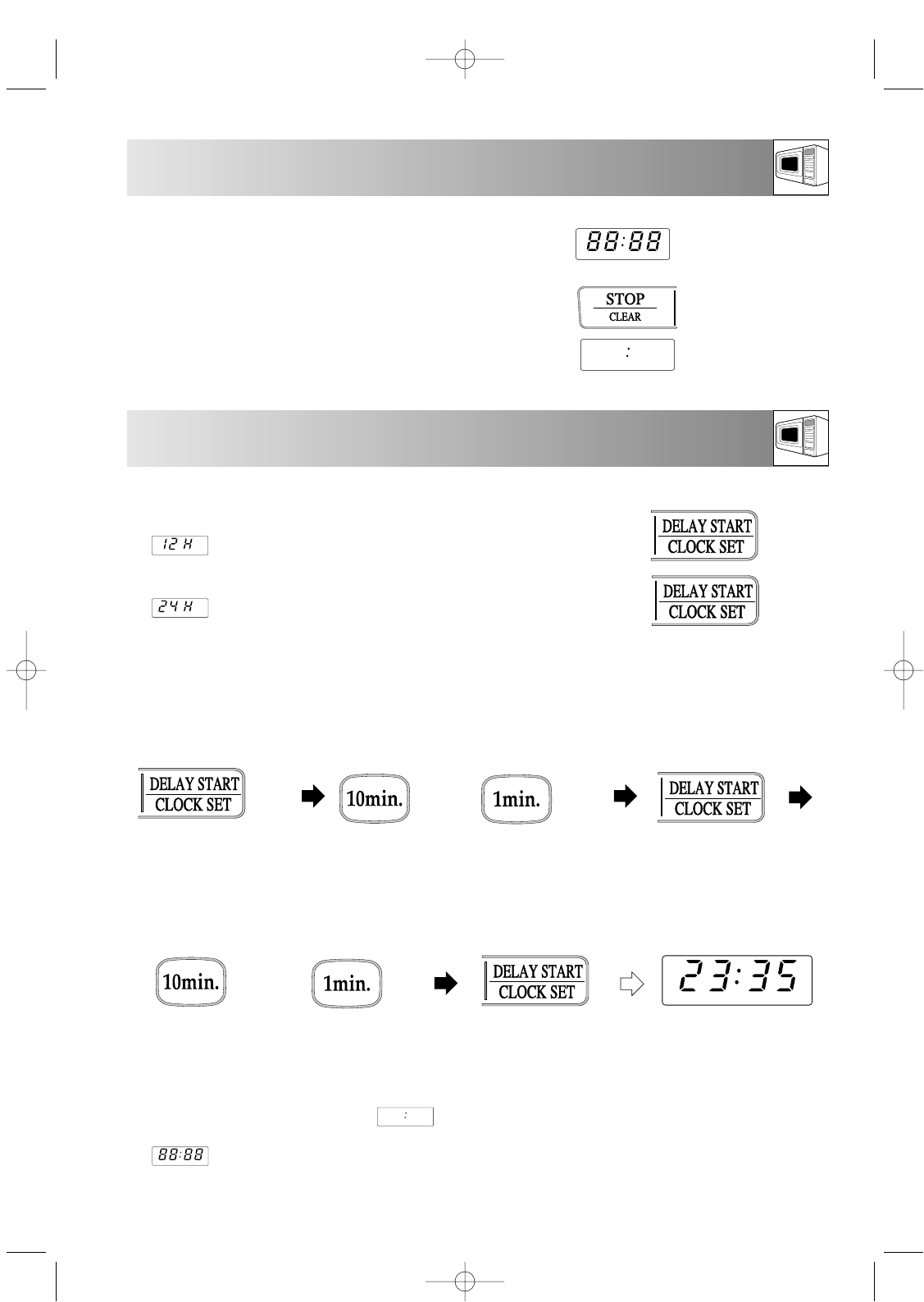 1. To set the 12 hour clock, press the DELAY START/CLOCK SET key once,