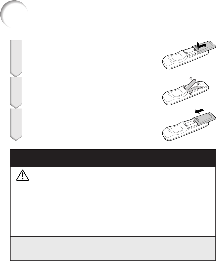 • Remove the batteries from the remote control if you will not be using the remote control for a long time.