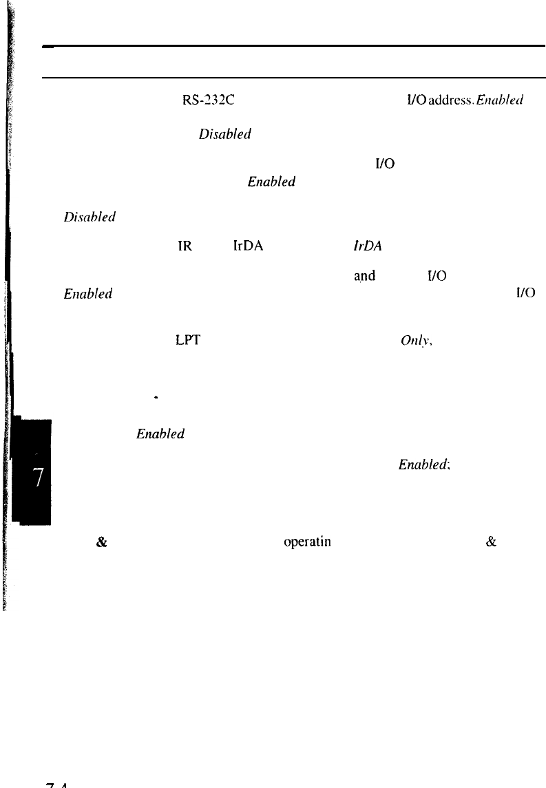 IR Port Sets the infrared port, selecting the mode, the, I/O channel, the IRQ