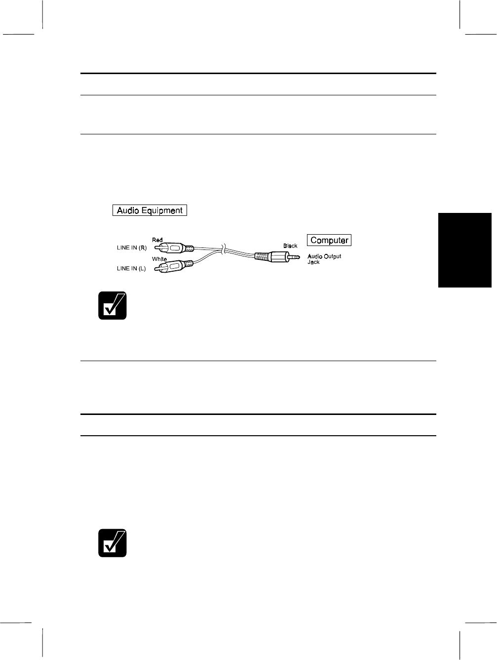 To output the computer’s audio signal to audio equipment: