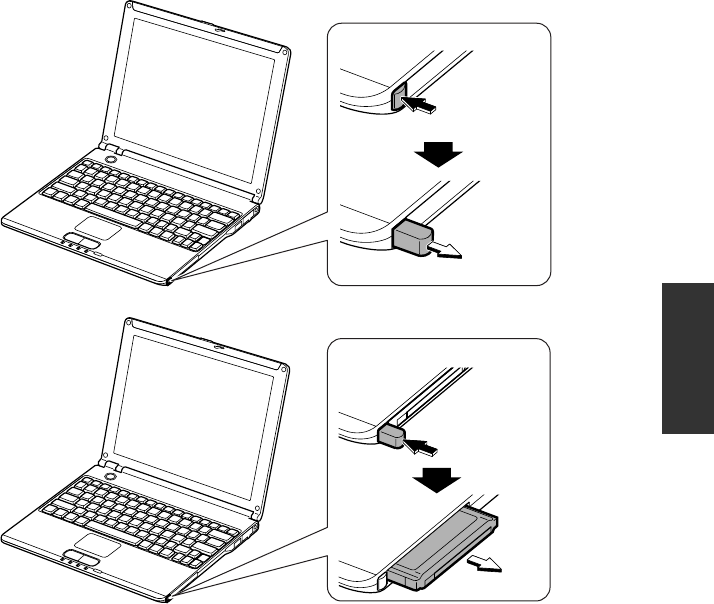 4. Push the eject button until the inserted PC card pops out; then, remove it.