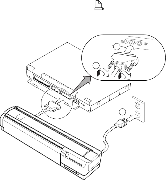 attached to the 25-pin parallel connector ( ) at the rear of the