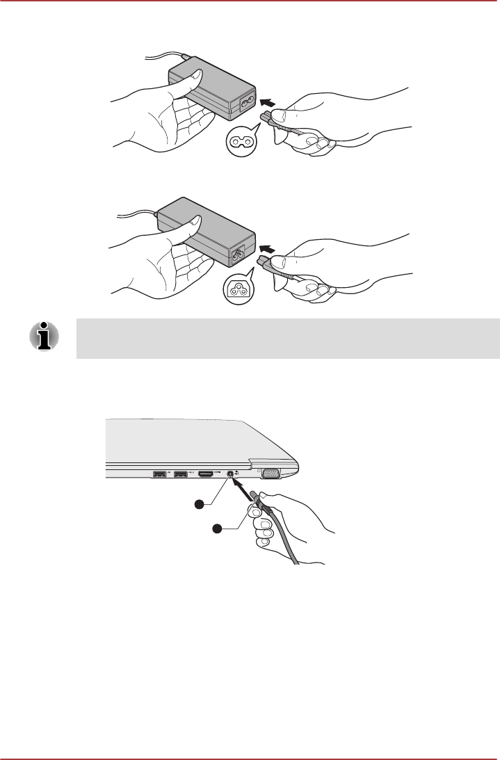 Figure 1-1 Connecting the power cord to the AC adaptor (2-pin plug)