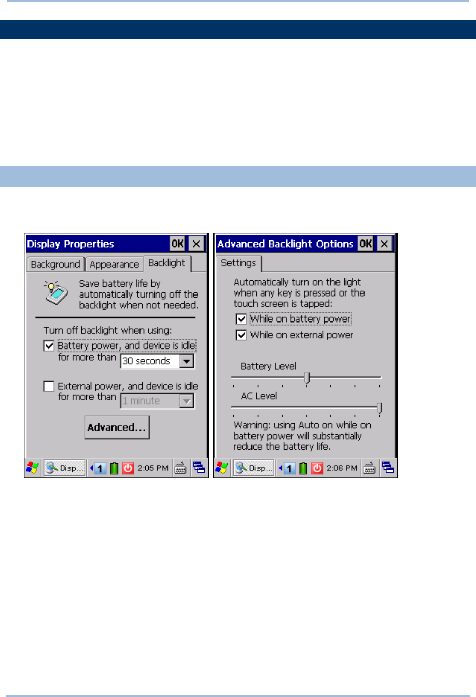 3) Select one or both of the check boxes to automatically turn off the LCD backlight