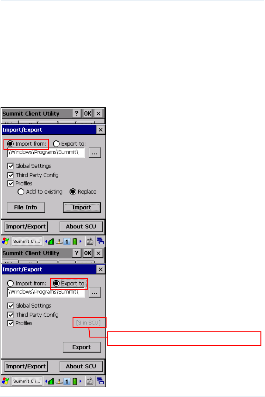 Export to: Export global settings, all standard SCU profiles, and the special profile