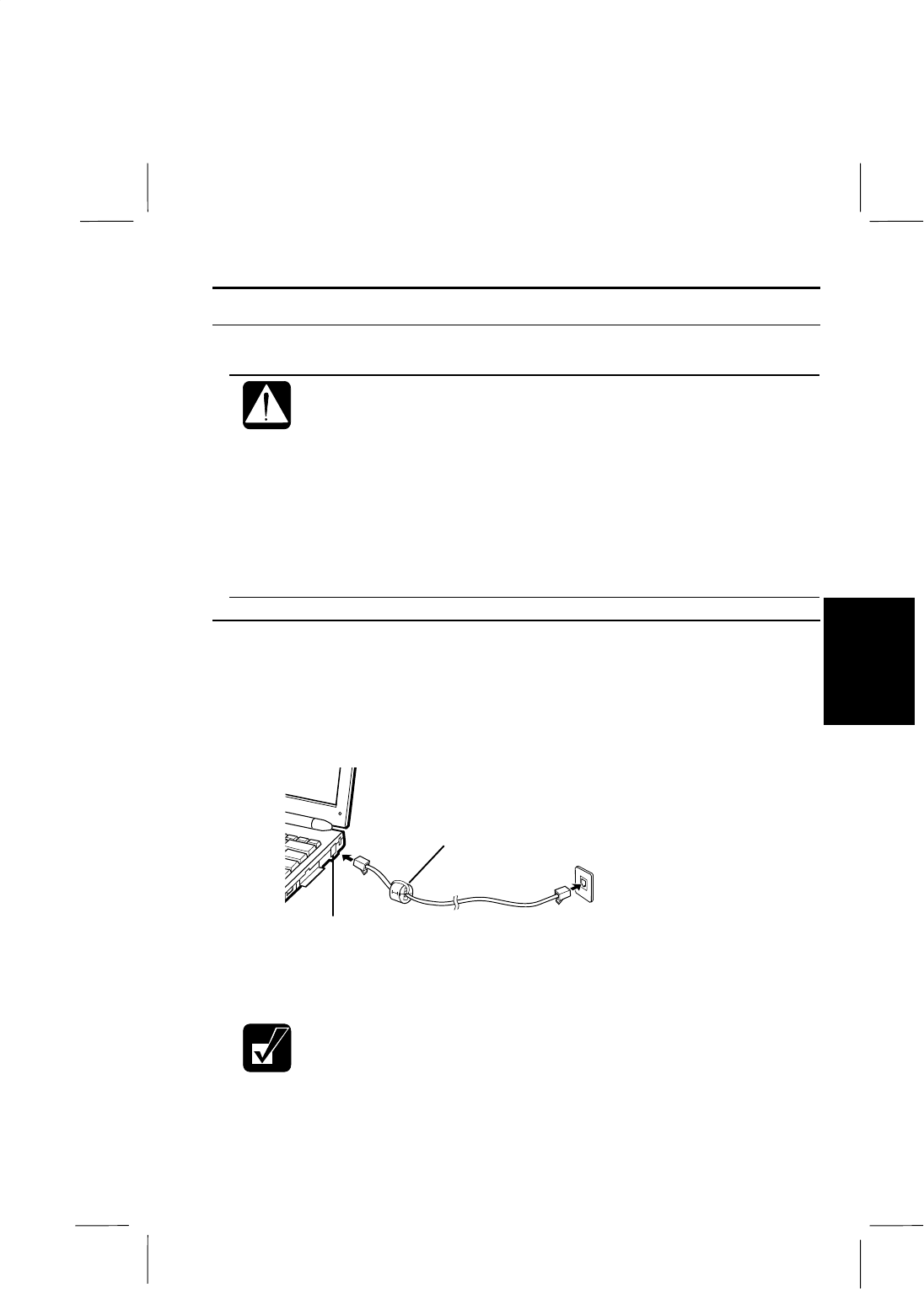 Remove the cover of the modem jack on the right side of your computer and