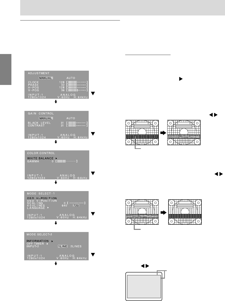 die Einstellungen von [CLOCK], [PHASE], [H-POS]