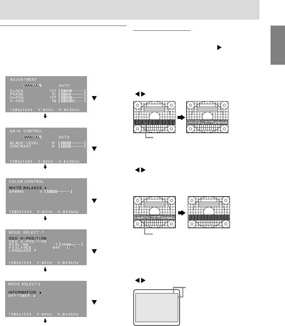 [CLOCK], [PHASE], [H-POS] and [V-POS] settings