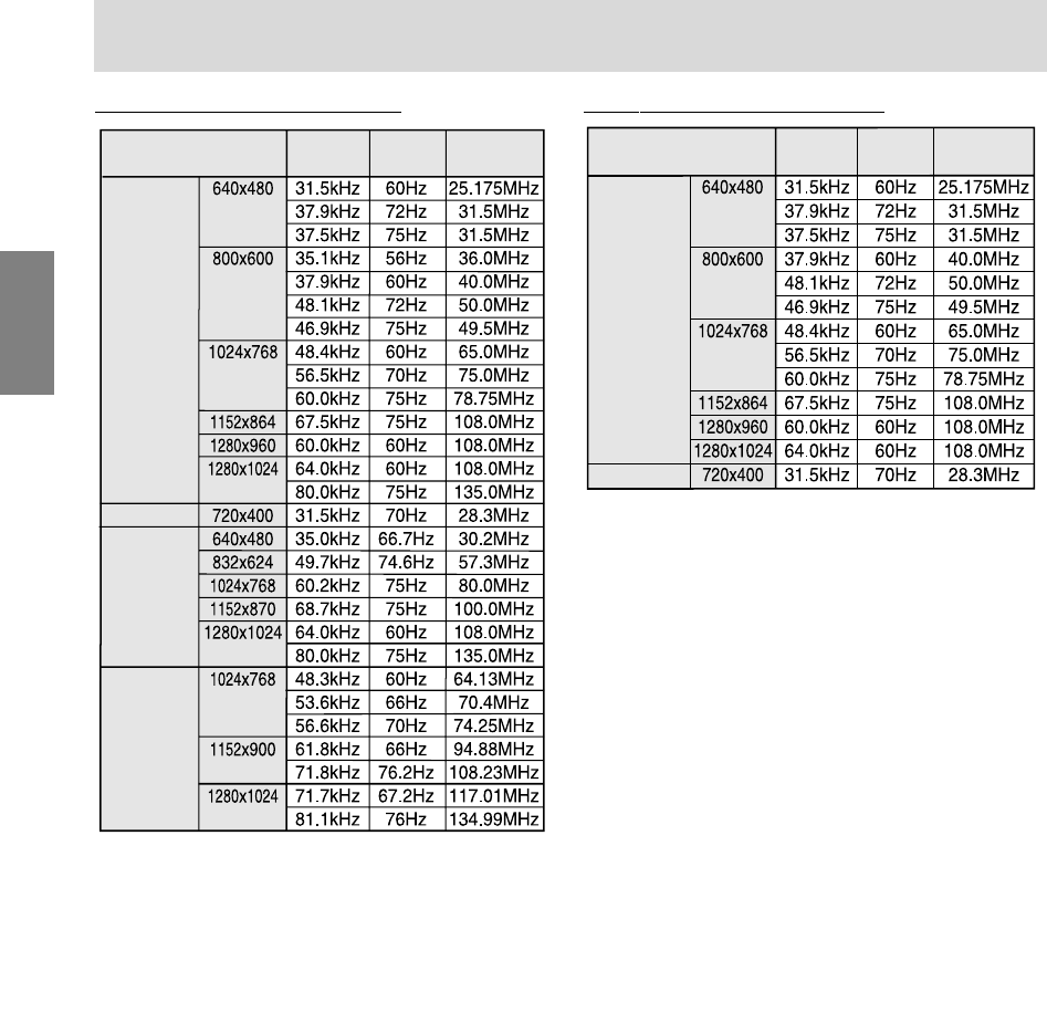 Anzeigemodus Hsync Vsync Punktfrequenz
