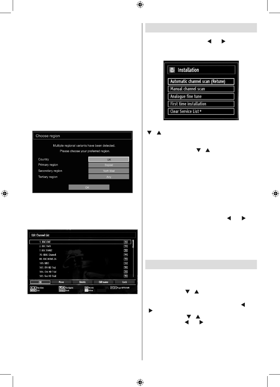 Analogue tuning using “ ”/“ ” and OK buttons.