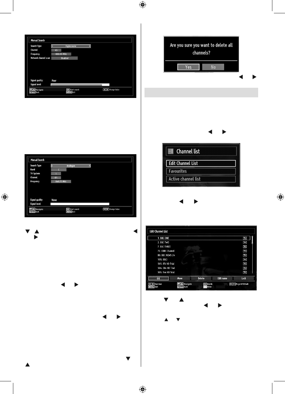 menu by using “ ” or “ ” and OK buttons. Analogue