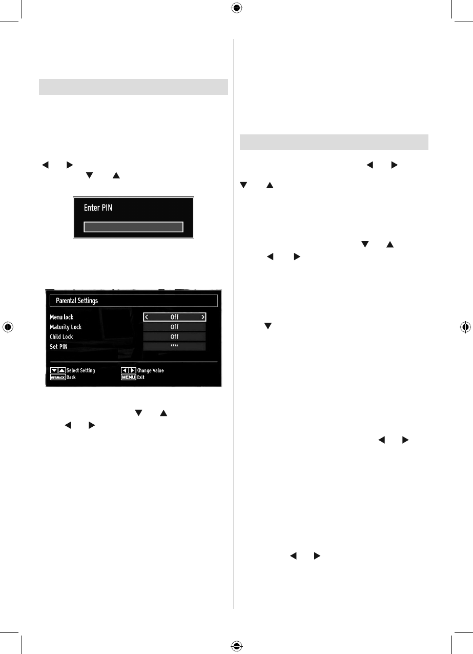 To display parental lock menu options, PIN number