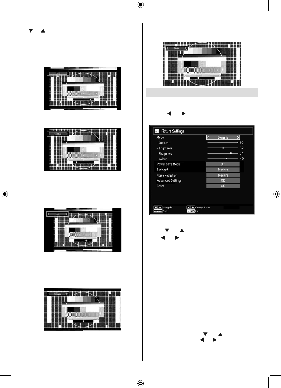 various screen modes. The Picture mode can be set