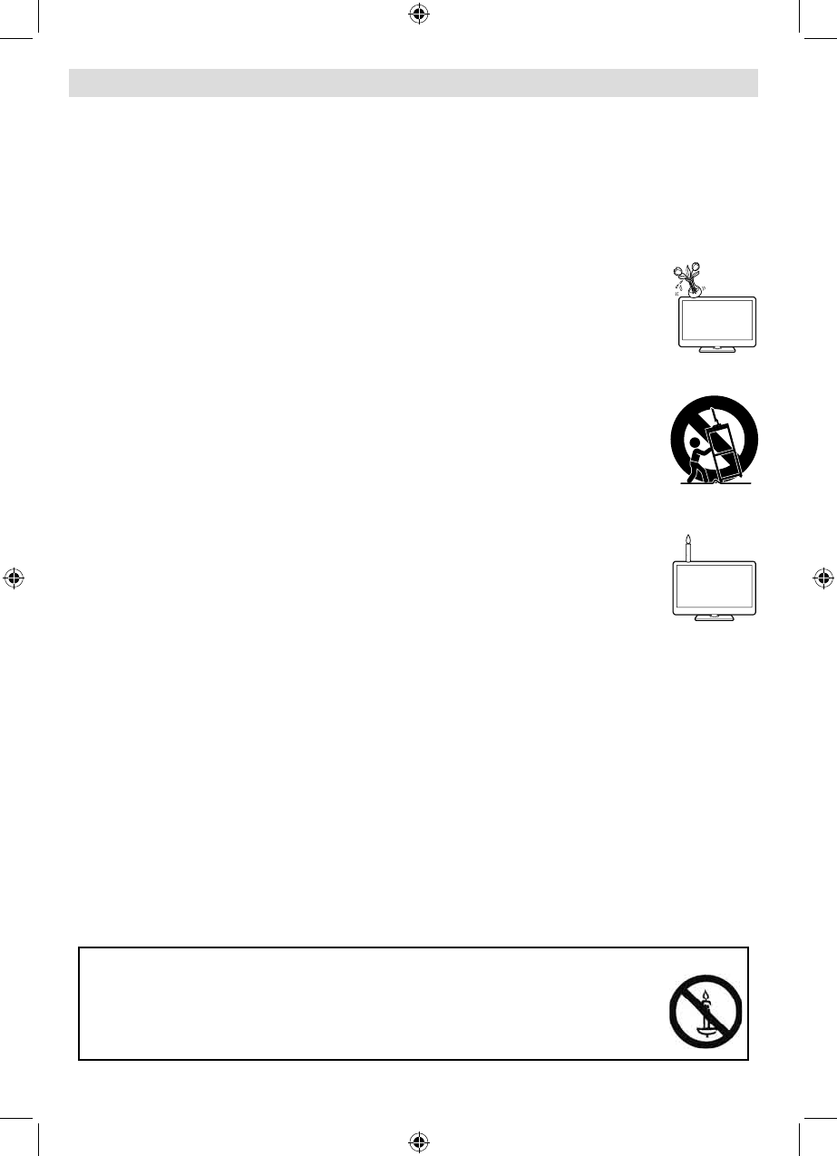 To prevent fi re, never place any type of candle or naked fl ames on the top or near the TV •