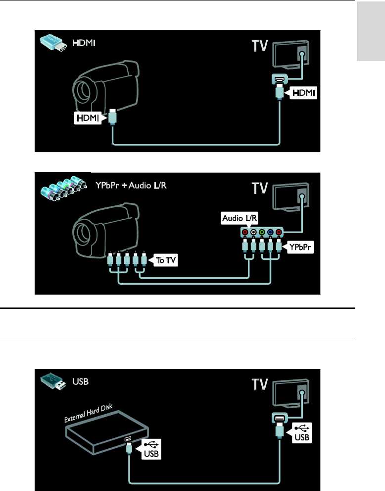 Connect the digital camcorder with a component cable (Y Pb Pr) and an audio L/R cable to the TV.