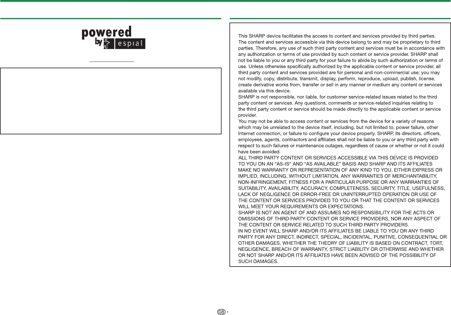 Software licences for Net TV Disclaimers for services using the Internet
