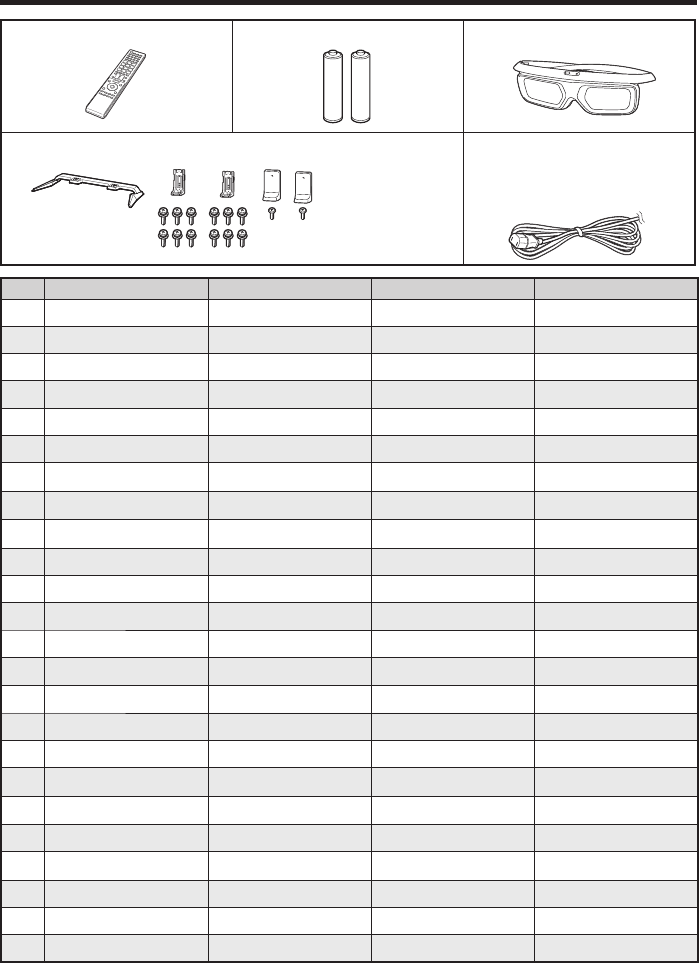 NL Bijgeleverde accessoires Afstandsbediening ( x 1) “AAA” formaat batterij ( x 2) 3D bril (x 2)