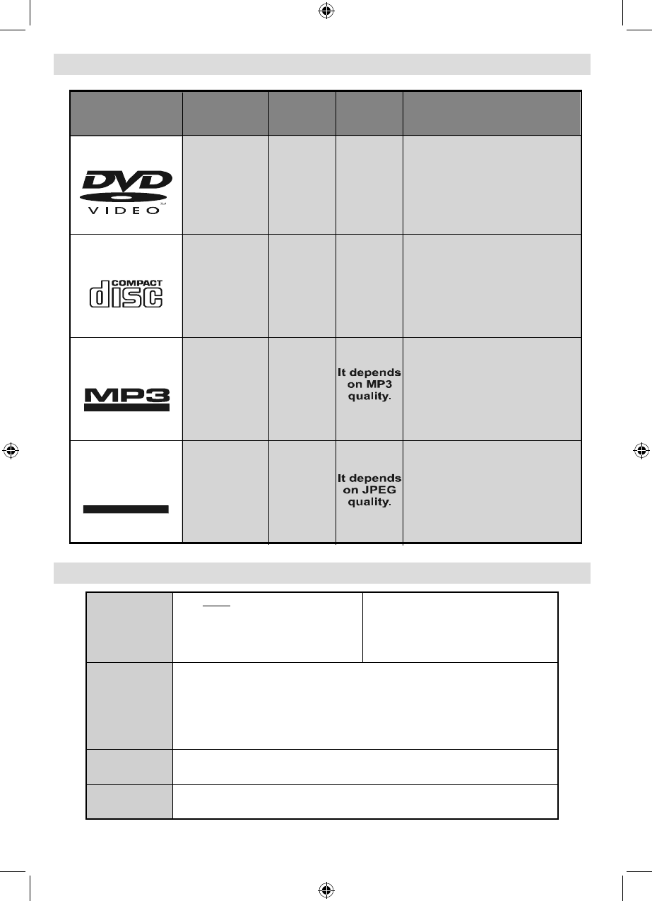 Disc Types Compatible with This Unit