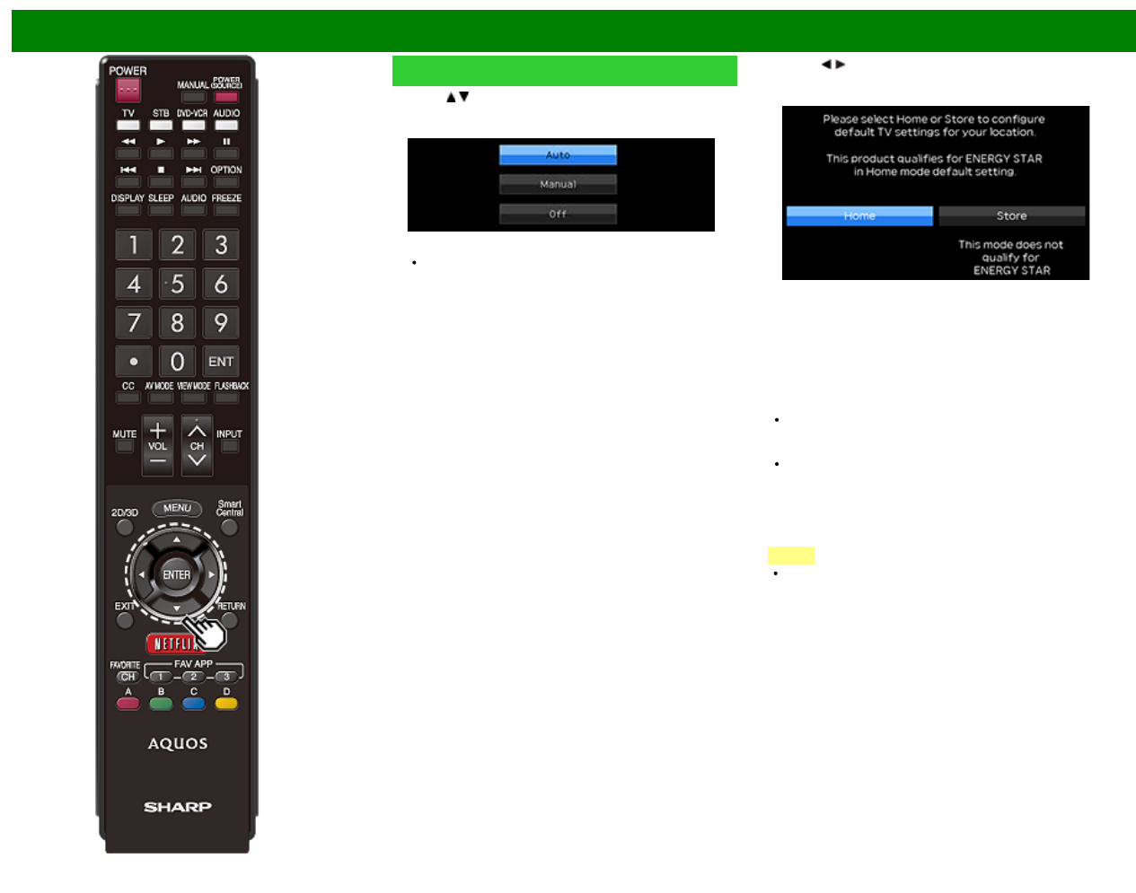 5 Press / to select "Home" or "Store".