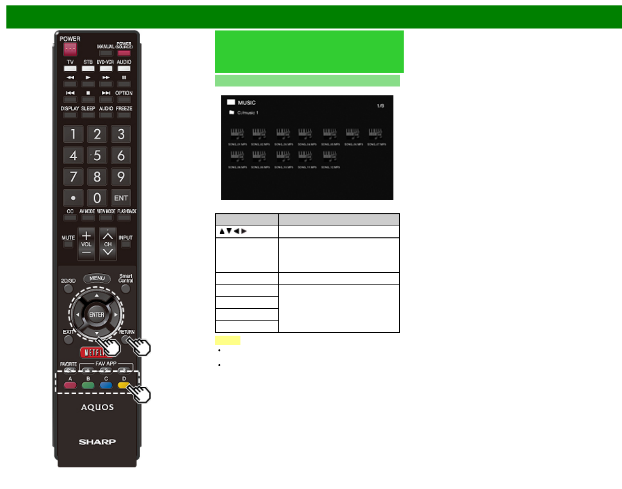 Buttons for music mode
