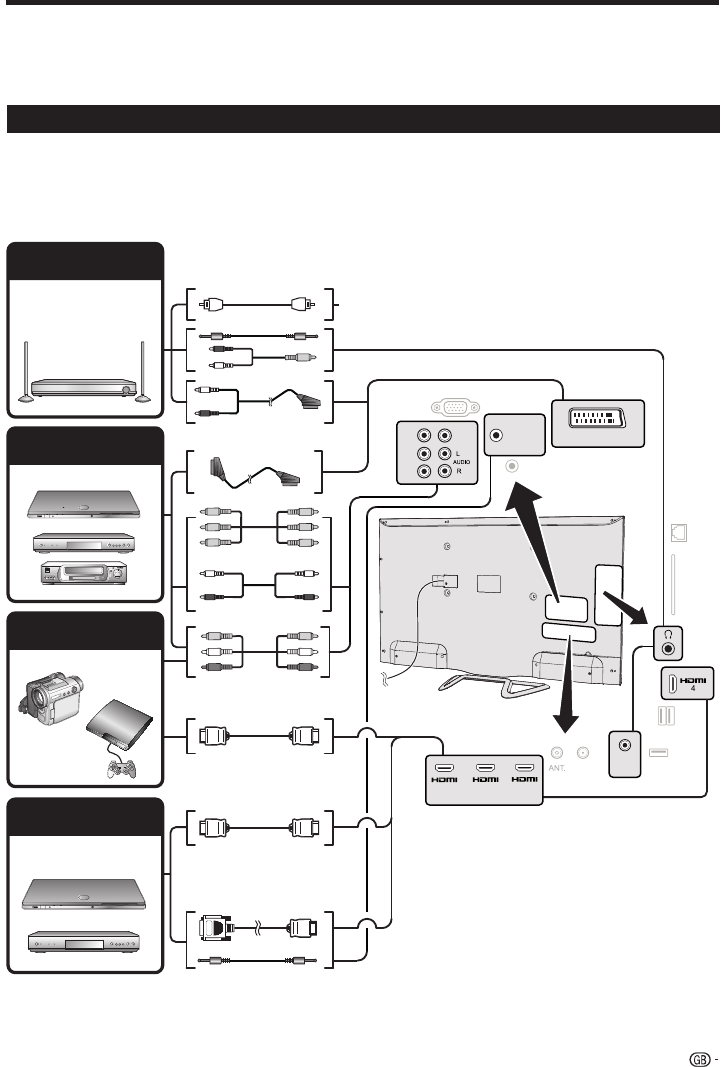 • Be sure to turn off the TV and any devices before making any connections.
