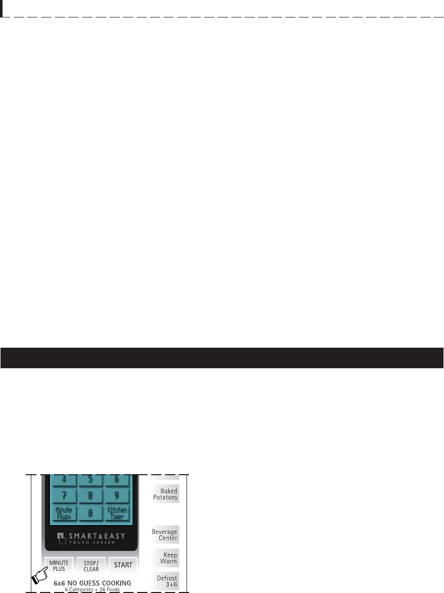 can also extend cooking time in multiples of one minute by repeatedly touching the MINUTE PLUS pad during