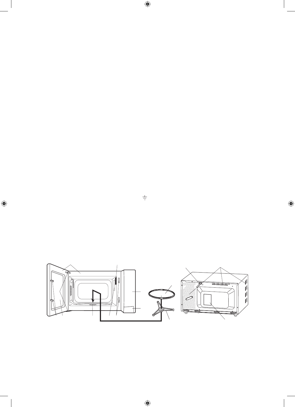 3. Fit the roller stay and turntable referring to OVEN DIAGRAM below. Place the roller stay on the bottom of