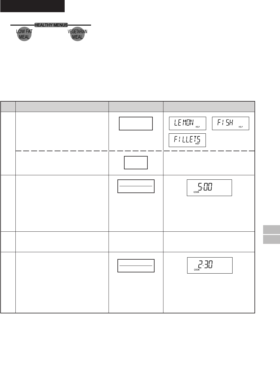 categories. To select a menu, press the desired HEALTHY MENUS pad until the menu of your choice is