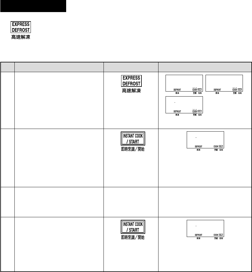 EXPRESS DEFROST rapidly defrosts 3 types of meat in