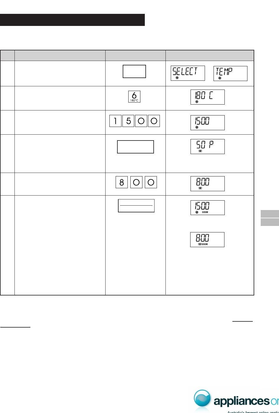 * Suppose you want to roast chicken pieces for 15 minutes at 180°C and then cook at 8 minutes at 50% power