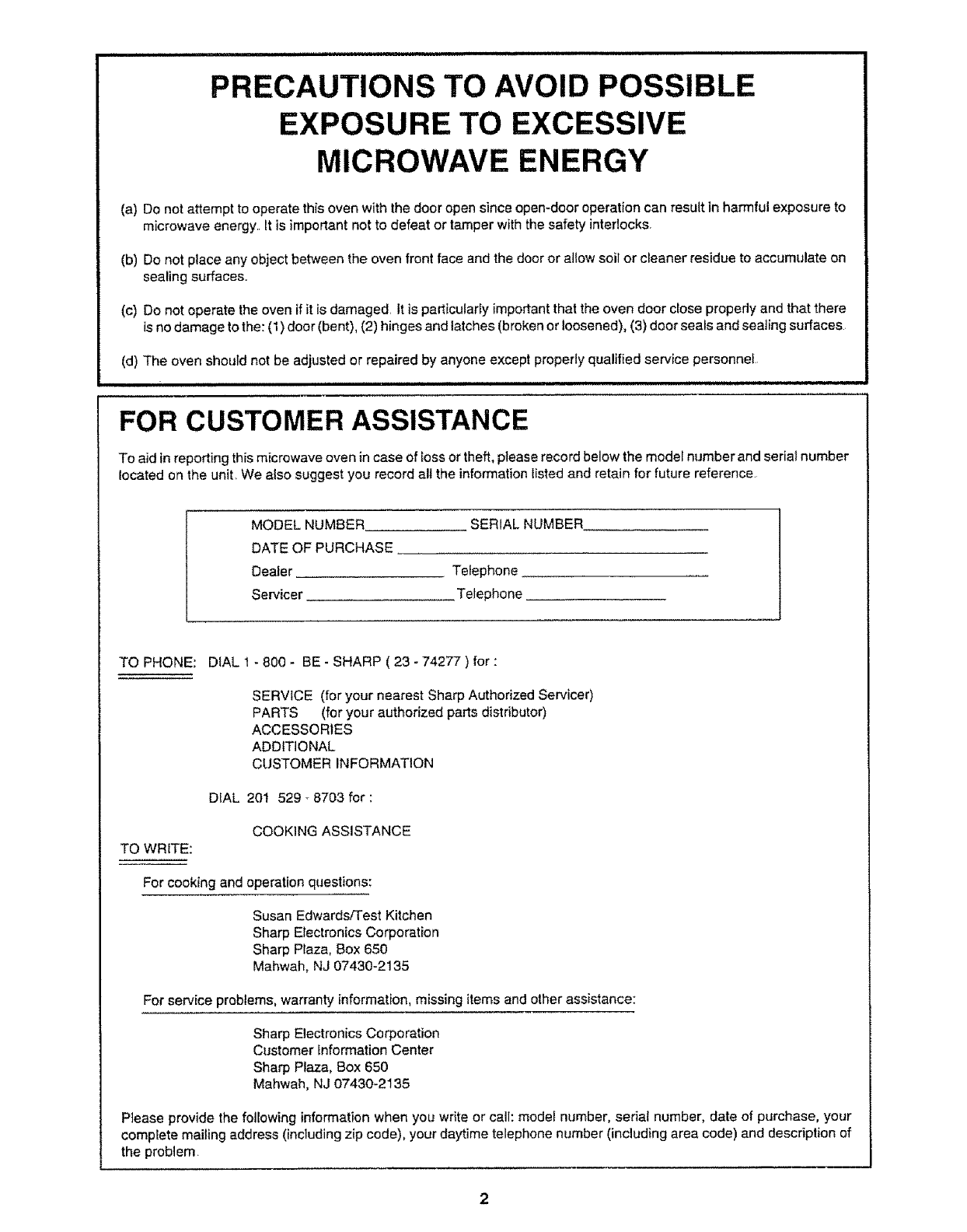 SERVICE (for your nearest Sharp Authorized Servicer)