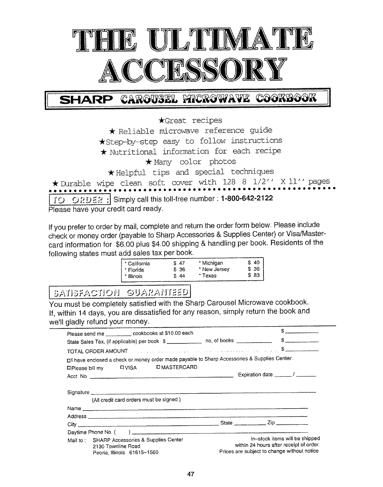 check or money order (payable to Sharp Accessories & Supplies Center) or Visa/Master-