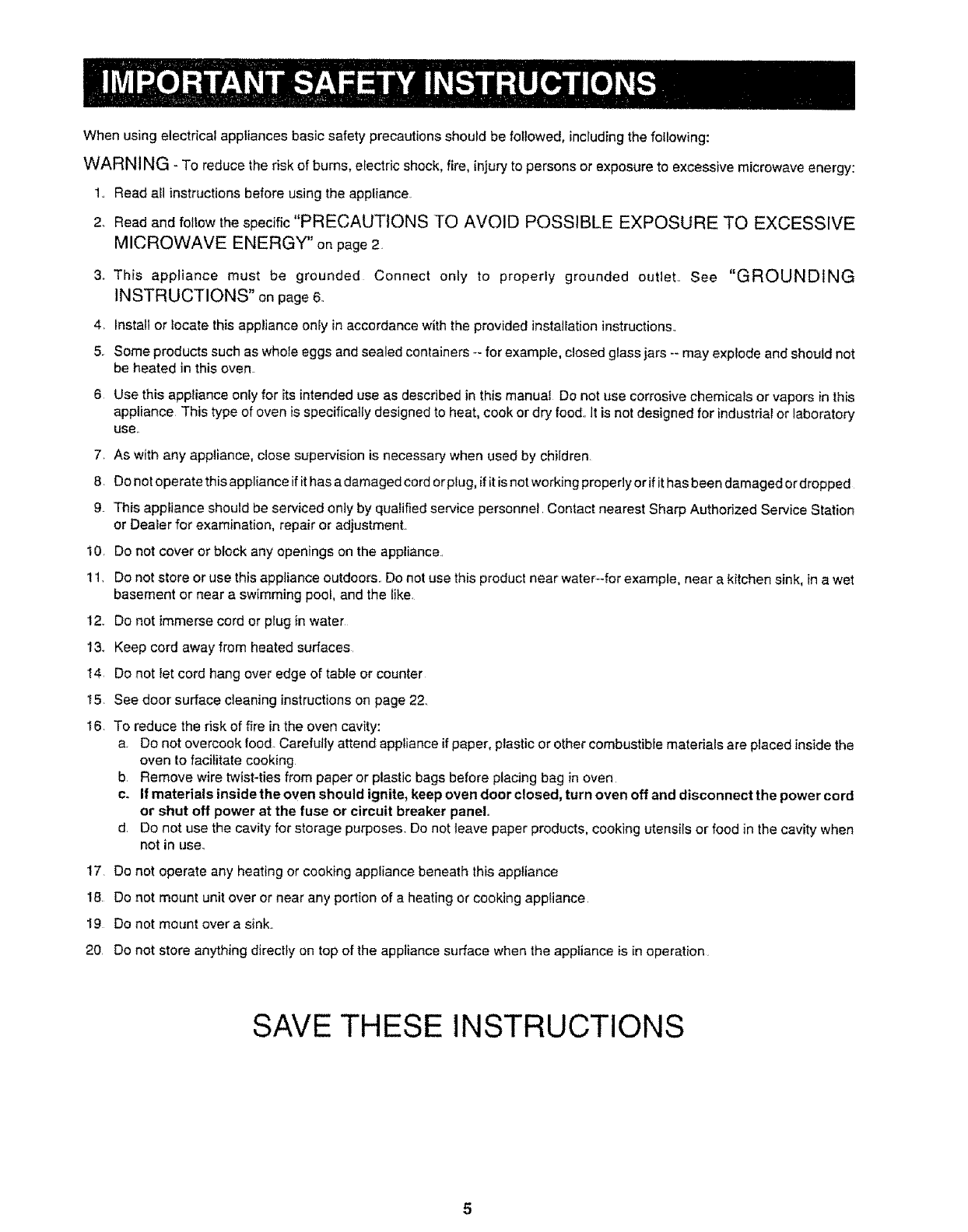 5. Some products such as whole eggs and sealed containers -- for example, closed glass jars -- may explode and should not