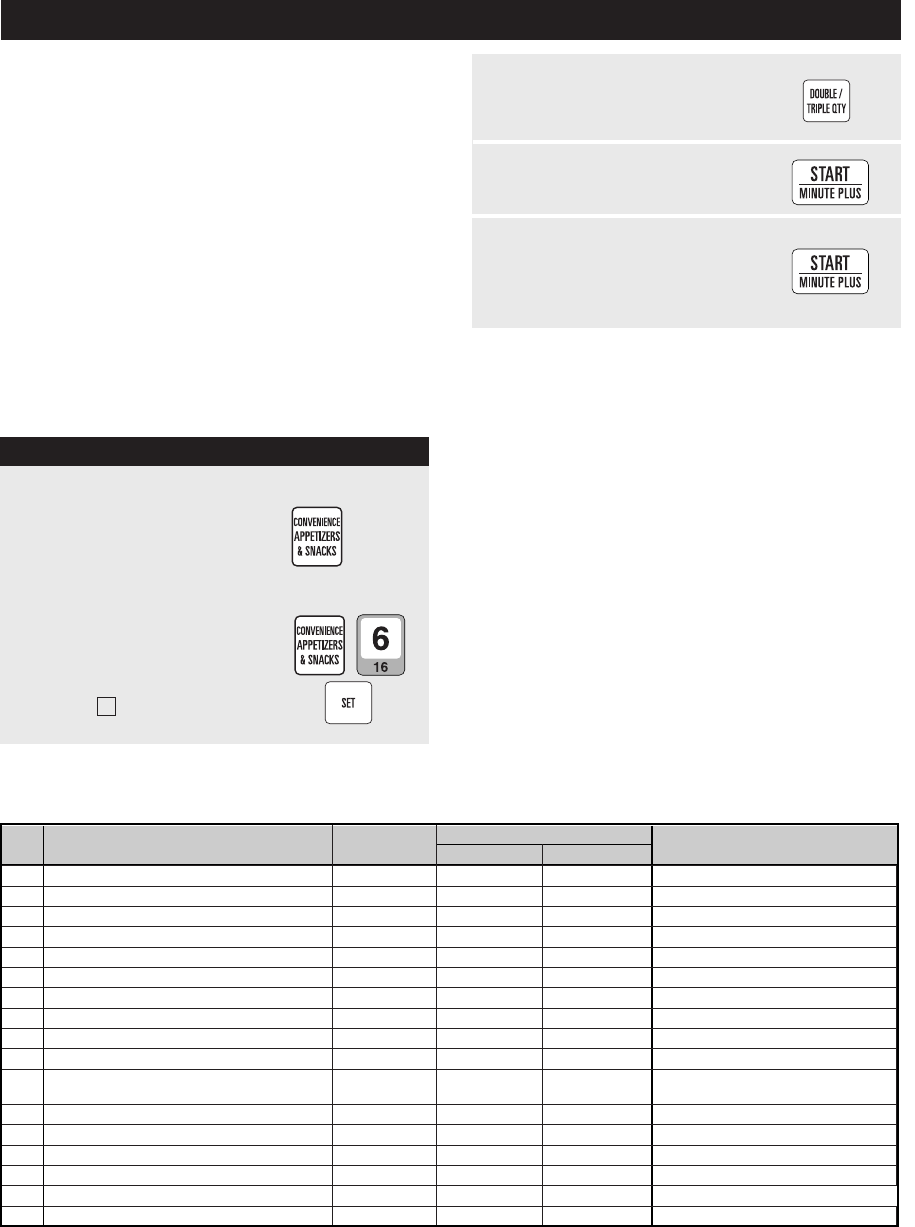 CONVENIENCE APPETIZERS & SNACKS CHART (All foods are frozen)