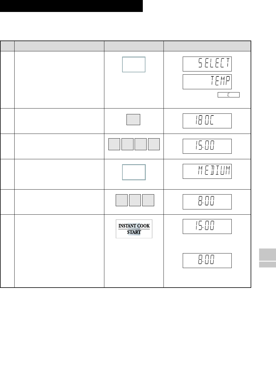 * Suppose you want to roast chicken pieces for 15 minutes at 180°C and then cook at 8 minutes on MEDIUM.