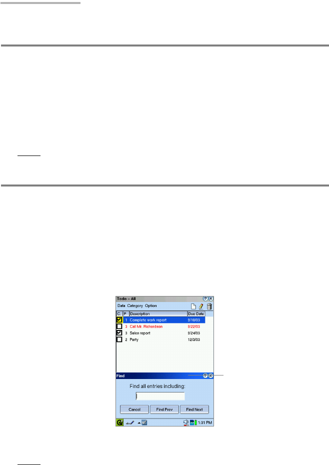 1. On the Index or Detail screen, tap the “Option” menu and then tap “Find”.
